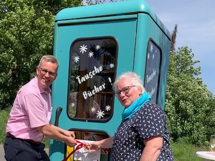 Hier können Bücher und gut erhaltene Zeitschriften getauscht, geliehen oder gespendet werden.