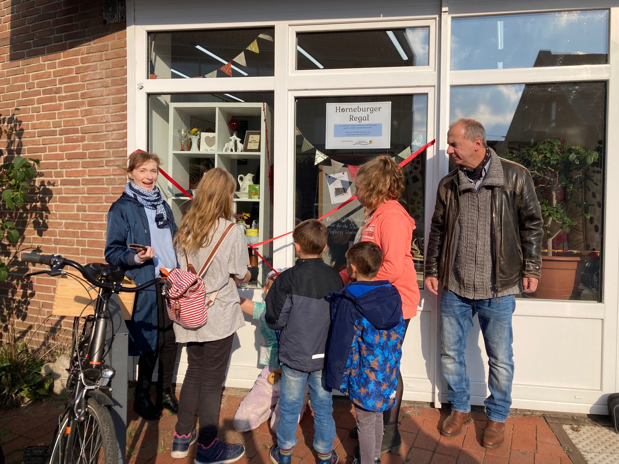 Das Horneburger Regal geht auf eine Idee von Herrn Dr. Helmut Schneider zurück und konnte zusammen mit Louisa Hielscher als Organisatorin des Freiwilligenzentrums und den ehrenamtlichen Helferin Lilli Wege und Nicole Reiter realisiert werden. Zudem darf unser Horneburger Regal bei dem Änderungsschneider, Herrn Sögüt, ein Schaufenster nutzen. Herzlichen Dank dafür.